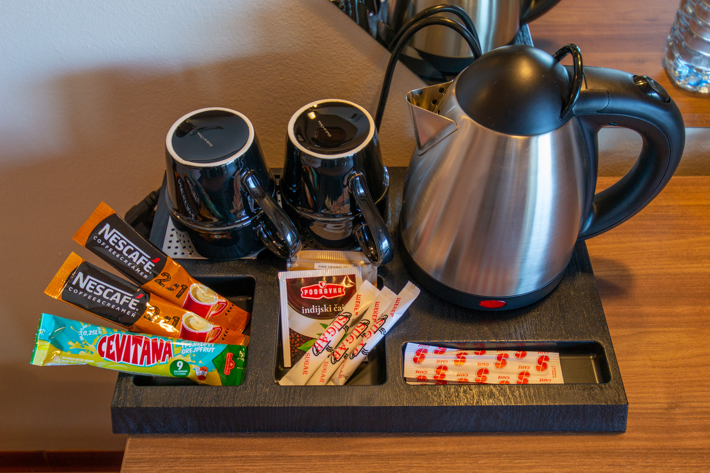 - Free bottled water